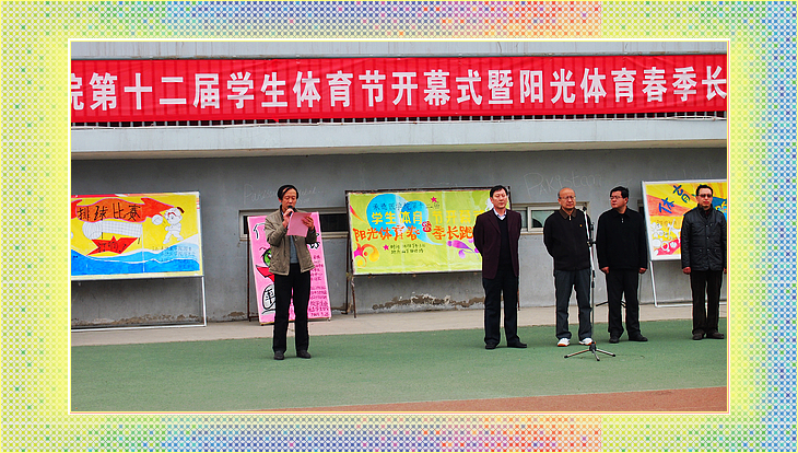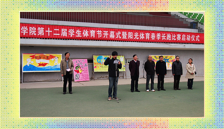 开幕式由公体部主任睢强主持。副校长宋鸿儒致开幕辞,他讲到良好的体魄是学习、工作的基础,集体精神和团队精神是成功的基石,勇于拼搏、敢于挑战是事业蒸蒸日上的巨大力量。他号召大家以饱满的热情和积极向上的精神风貌投入到体育节的各项活动中,把本届体育节举办成一届团结和谐、拼搏向上、展示我校大学生良好精神风貌的体育盛会。